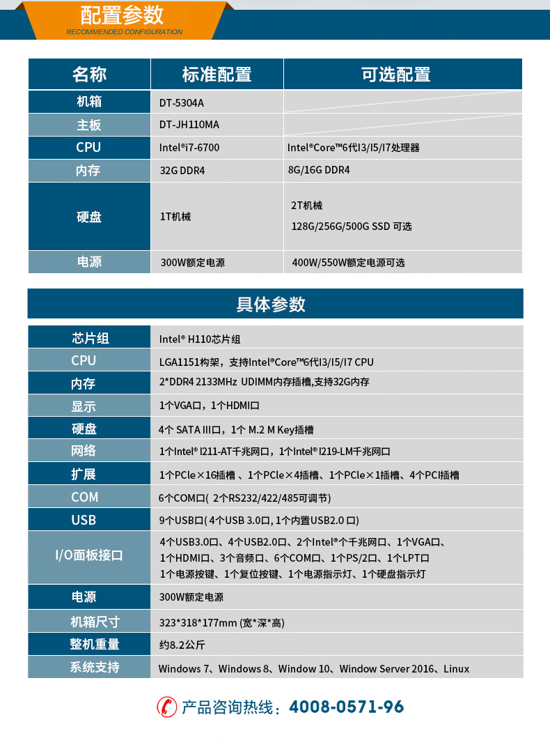 酷睿6代壁掛式工控機(jī) 4個PCI插槽9個USB口服務(wù)器 DT-5304A-JH110MA
